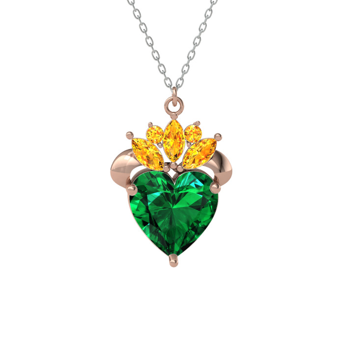 Yeşil kuvars ve sitrin 925 ayar rose altın kaplama gümüş kolye (40 cm beyaz altın rolo zincir)