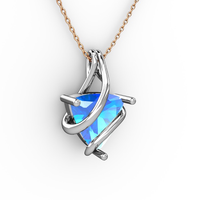 Akuamarin 14 ayar beyaz altın kolye (40 cm rose altın rolo zincir)