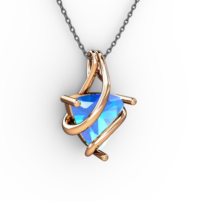 Akuamarin 14 ayar rose altın kolye (40 cm gümüş rolo zincir)
