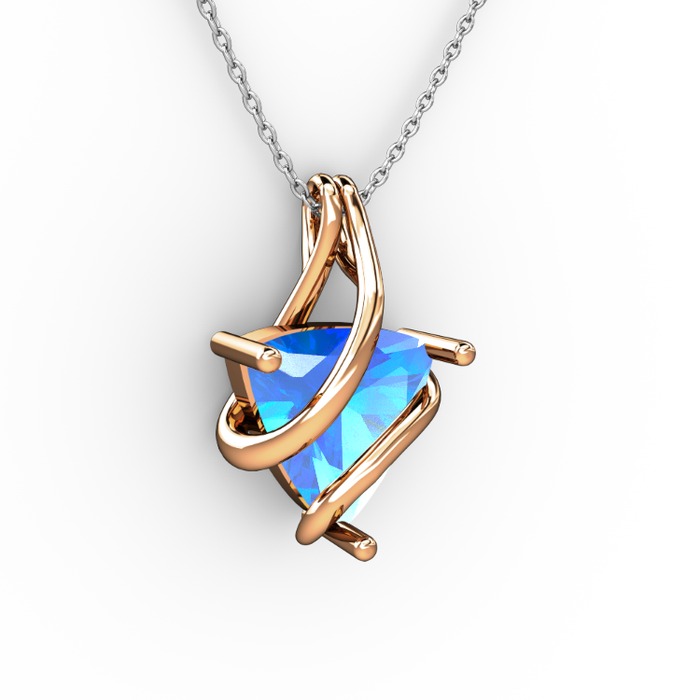 Akuamarin 925 ayar rose altın kaplama gümüş kolye (40 cm beyaz altın rolo zincir)