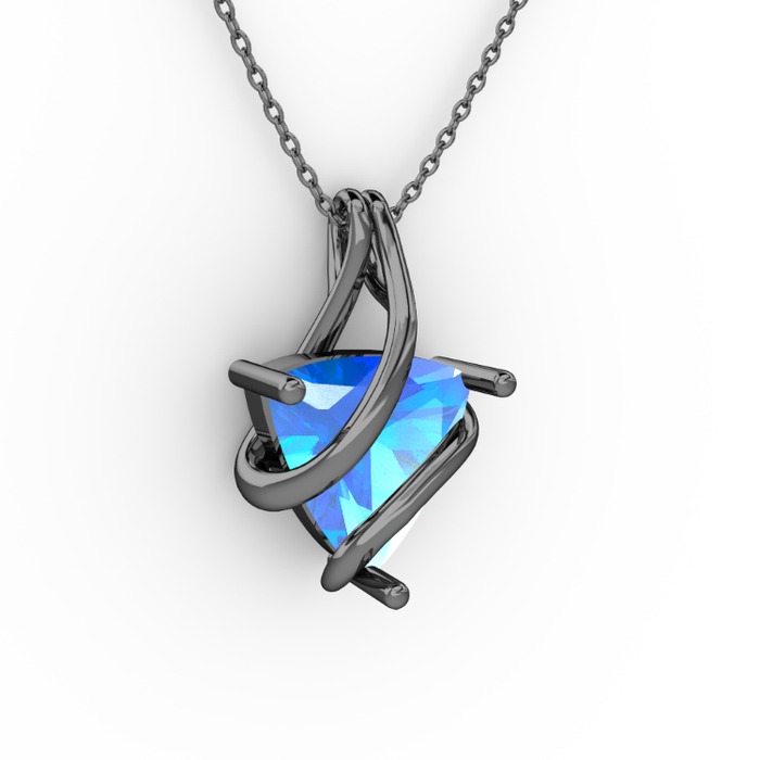 Akuamarin 925 ayar siyah rodyum kaplama gümüş kolye (40 cm gümüş rolo zincir)
