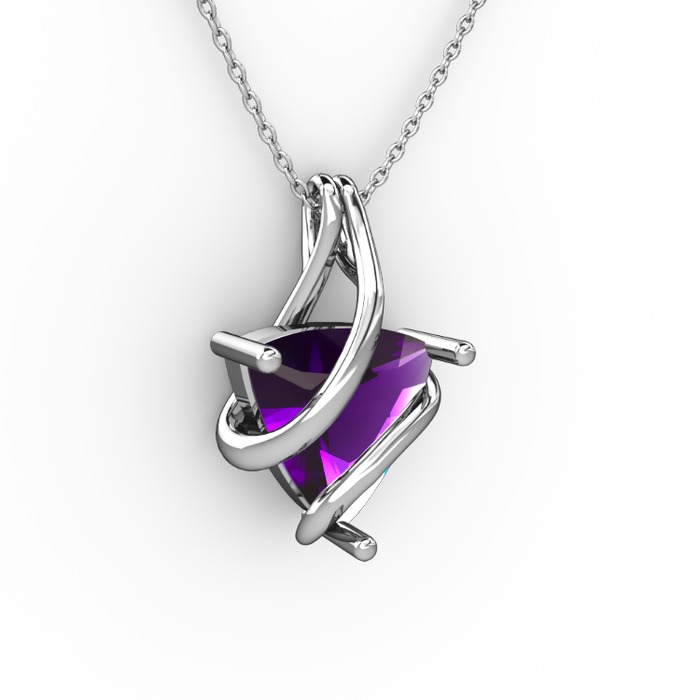 Ametist 14 ayar beyaz altın kolye (40 cm beyaz altın rolo zincir)