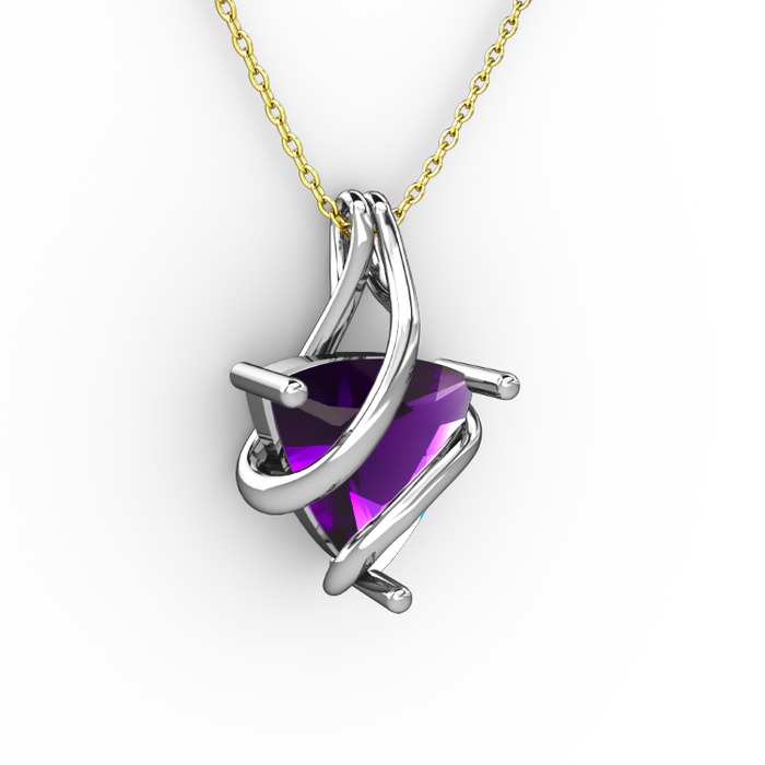 Ametist 18 ayar beyaz altın kolye (40 cm altın rolo zincir)