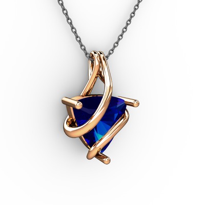 Lab safir 8 ayar rose altın kolye (40 cm gümüş rolo zincir)
