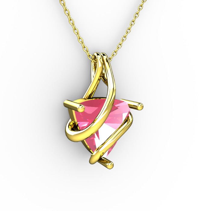 Pembe kuvars 18 ayar altın kolye (40 cm gümüş rolo zincir)