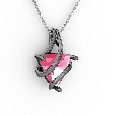 Pembe kuvars 925 ayar siyah rodyum kaplama gümüş kolye (40 cm gümüş rolo zincir)