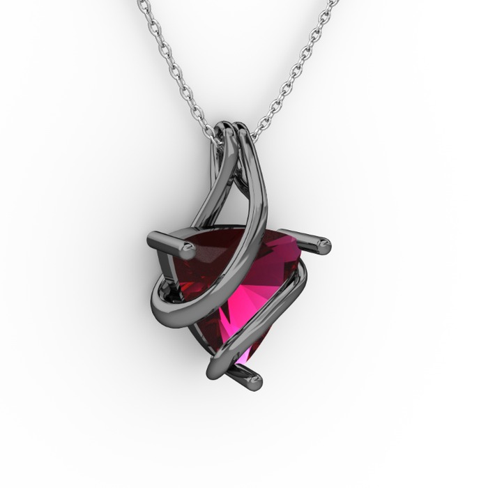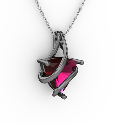 Rodolit garnet 925 ayar siyah rodyum kaplama gümüş kolye (40 cm beyaz altın rolo zincir)