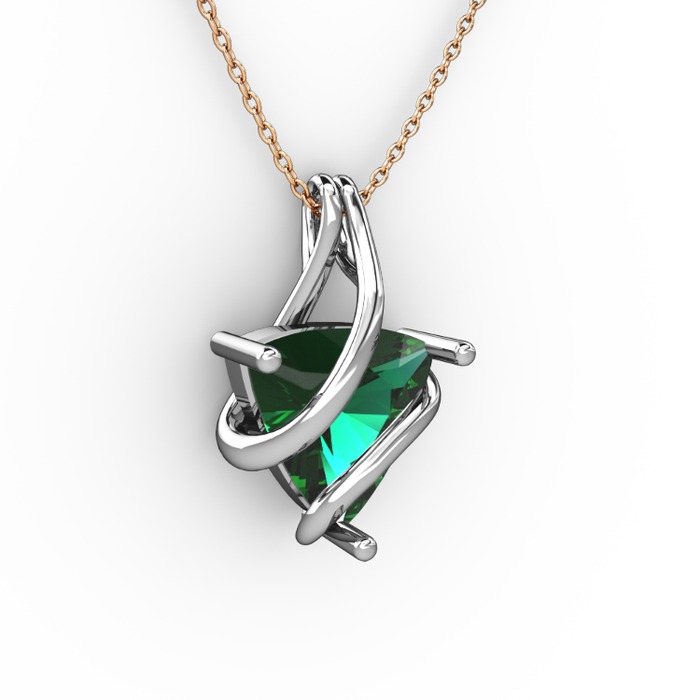 Yeşil kuvars 18 ayar beyaz altın kolye (40 cm rose altın rolo zincir)