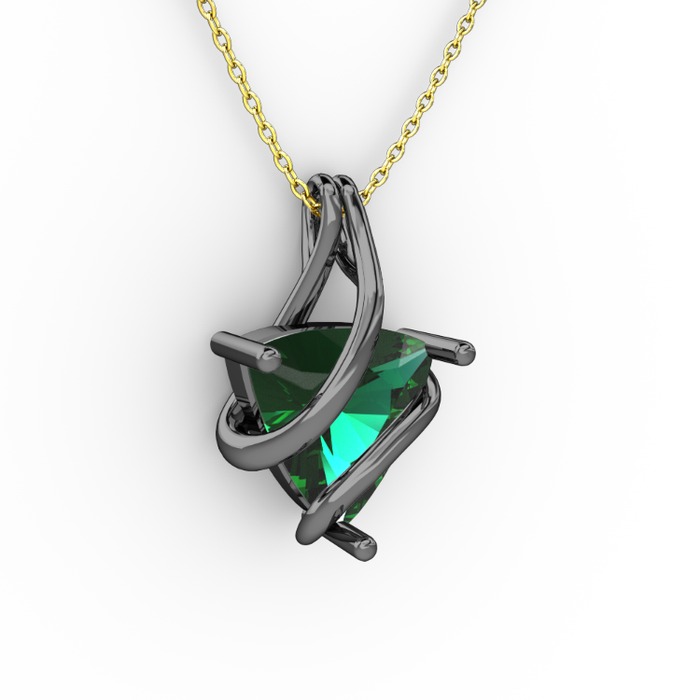 Yeşil kuvars 925 ayar siyah rodyum kaplama gümüş kolye (40 cm altın rolo zincir)