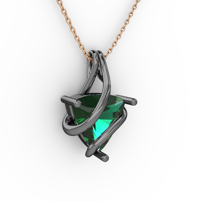 Yeşil kuvars 925 ayar siyah rodyum kaplama gümüş kolye (40 cm gümüş rolo zincir)