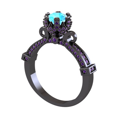 Akuamarin ve ametist 925 ayar siyah rodyum kaplama gümüş yüzük