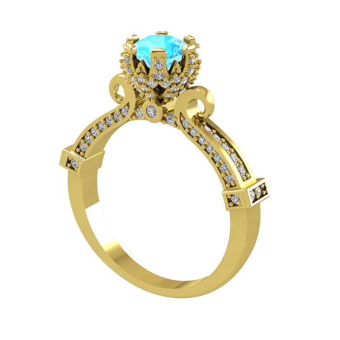 Akuamarin ve beyaz zirkon 925 ayar altın kaplama gümüş yüzük