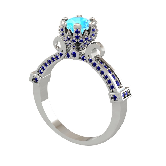 Akuamarin ve lab safir 18 ayar beyaz altın yüzük