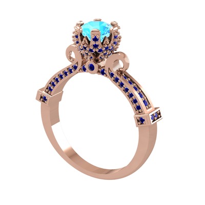 Akuamarin ve lab safir 925 ayar rose altın kaplama gümüş yüzük