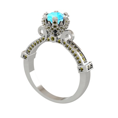 Akuamarin ve peridot 8 ayar beyaz altın yüzük