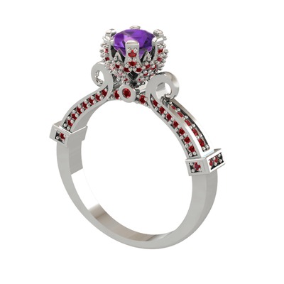 Ametist ve garnet 8 ayar beyaz altın yüzük