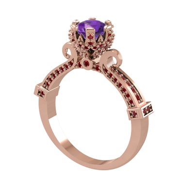 Ametist ve garnet 8 ayar rose altın yüzük