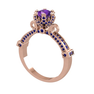 Ametist ve lab safir 925 ayar rose altın kaplama gümüş yüzük