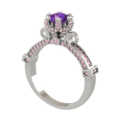Ametist ve pembe kuvars 925 ayar gümüş yüzük