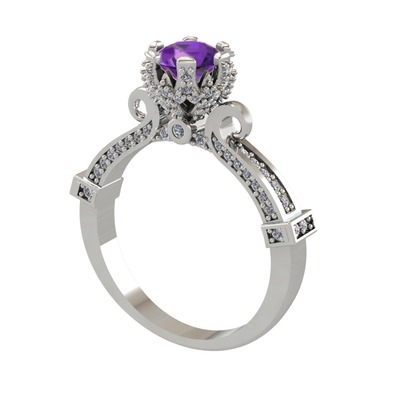 Ametist ve pırlanta 18 ayar beyaz altın yüzük (1.034 karat)