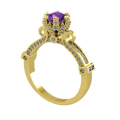 Ametist ve pırlanta 8 ayar altın yüzük (1.034 karat)