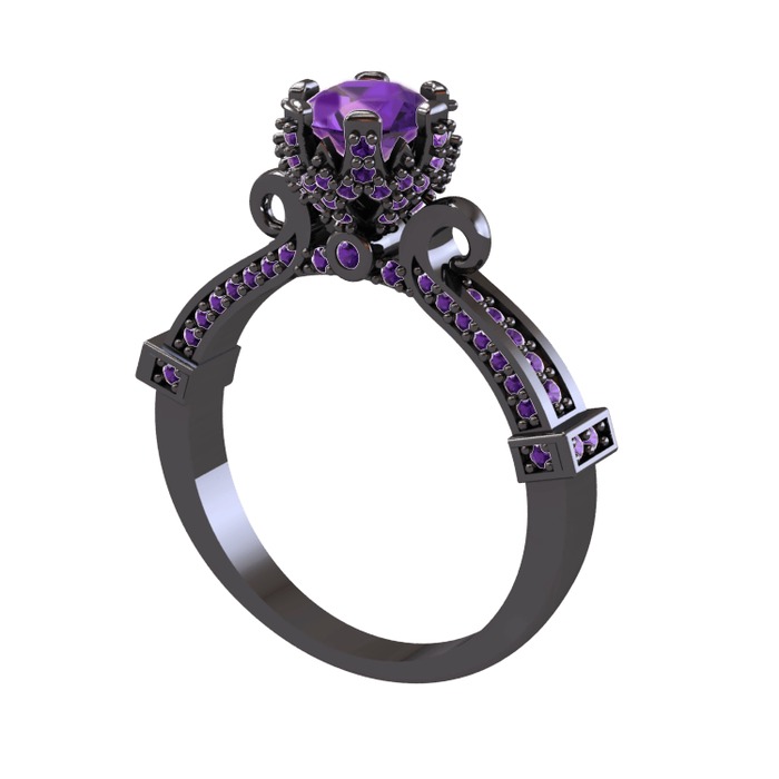 Ametist 925 ayar siyah rodyum kaplama gümüş yüzük
