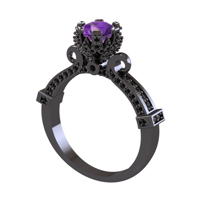 Ametist ve siyah zirkon 925 ayar siyah rodyum kaplama gümüş yüzük