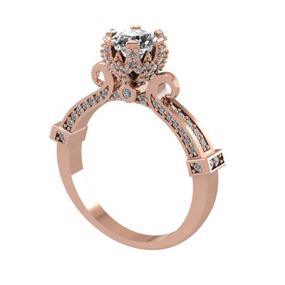Beyaz zirkon ve pırlanta 18 ayar rose altın yüzük (1.034 karat)