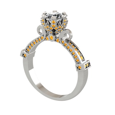 Beyaz zirkon ve sitrin 8 ayar beyaz altın yüzük