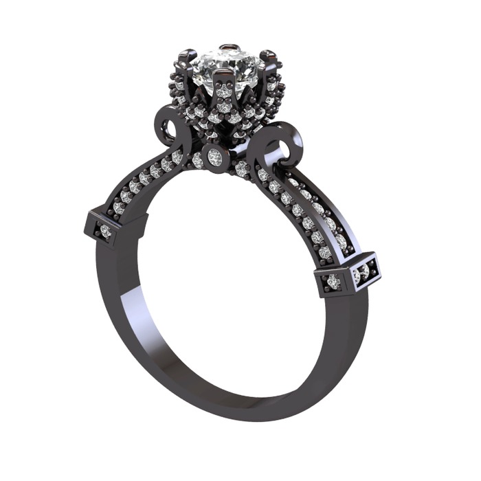 Beyaz zirkon 925 ayar siyah rodyum kaplama gümüş yüzük