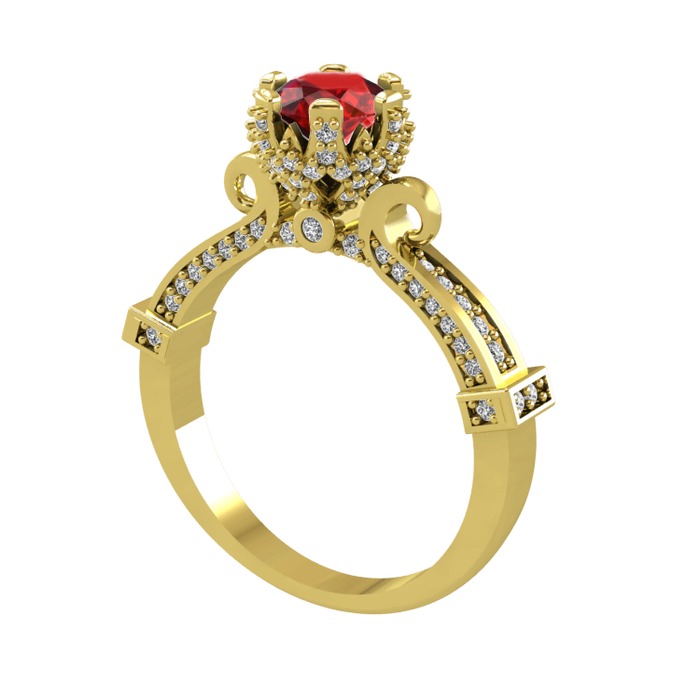 Garnet ve beyaz zirkon 18 ayar altın yüzük