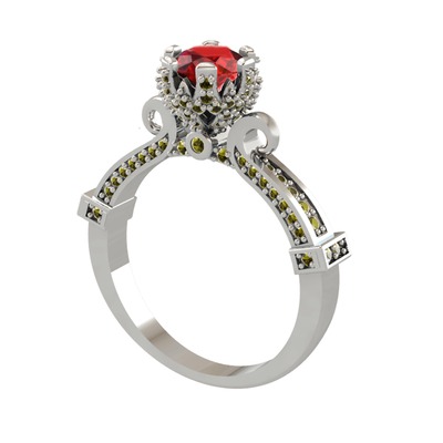 Garnet ve peridot 18 ayar beyaz altın yüzük