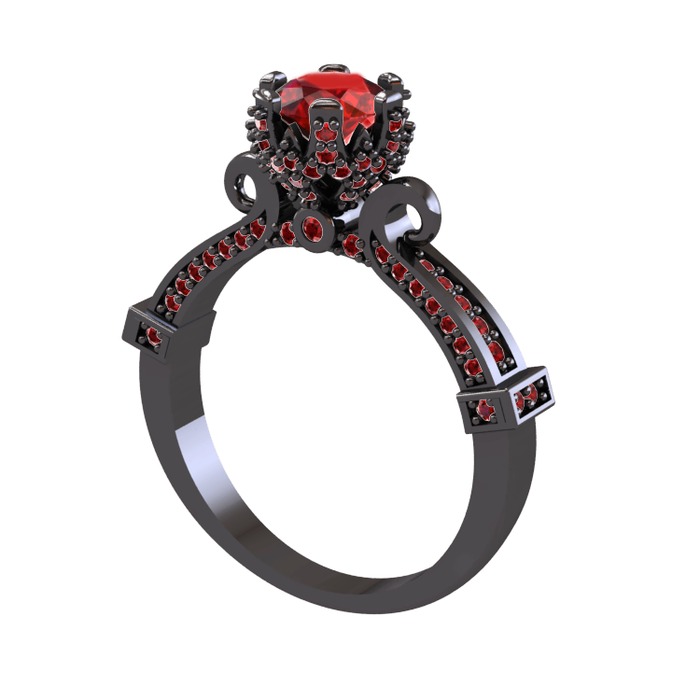 Garnet 925 ayar siyah rodyum kaplama gümüş yüzük