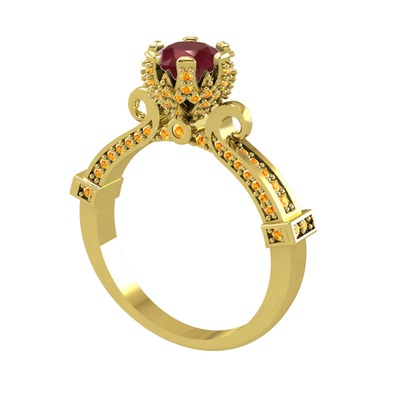 Kök yakut ve sitrin 18 ayar altın yüzük