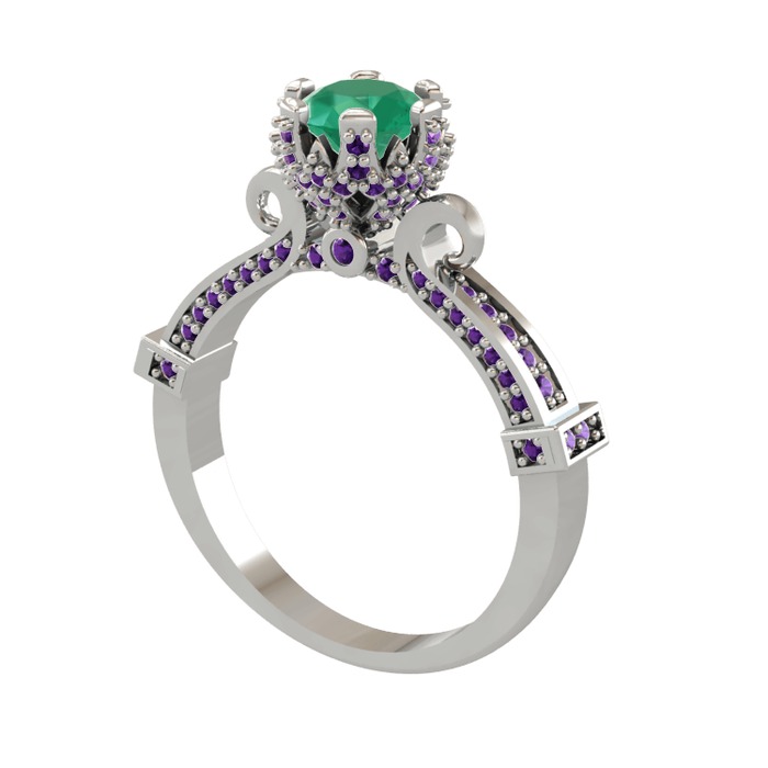 Kök zümrüt ve ametist 925 ayar gümüş yüzük