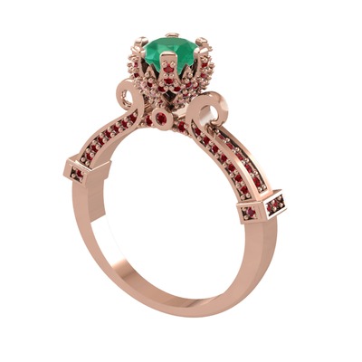 Kök zümrüt ve garnet 925 ayar rose altın kaplama gümüş yüzük