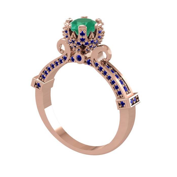 Kök zümrüt ve lab safir 925 ayar rose altın kaplama gümüş yüzük