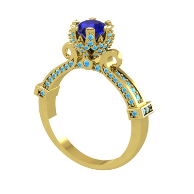 Lab safir ve akuamarin 14 ayar altın yüzük