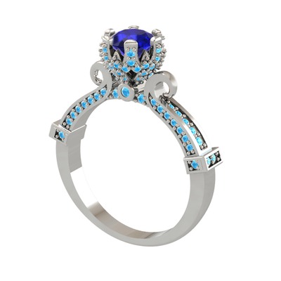 Lab safir ve akuamarin 18 ayar beyaz altın yüzük