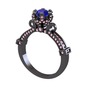 Lab safir ve pembe kuvars 925 ayar siyah rodyum kaplama gümüş yüzük