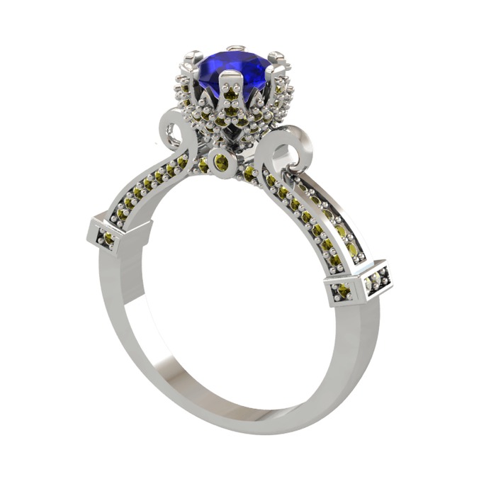 Lab safir ve peridot 8 ayar beyaz altın yüzük