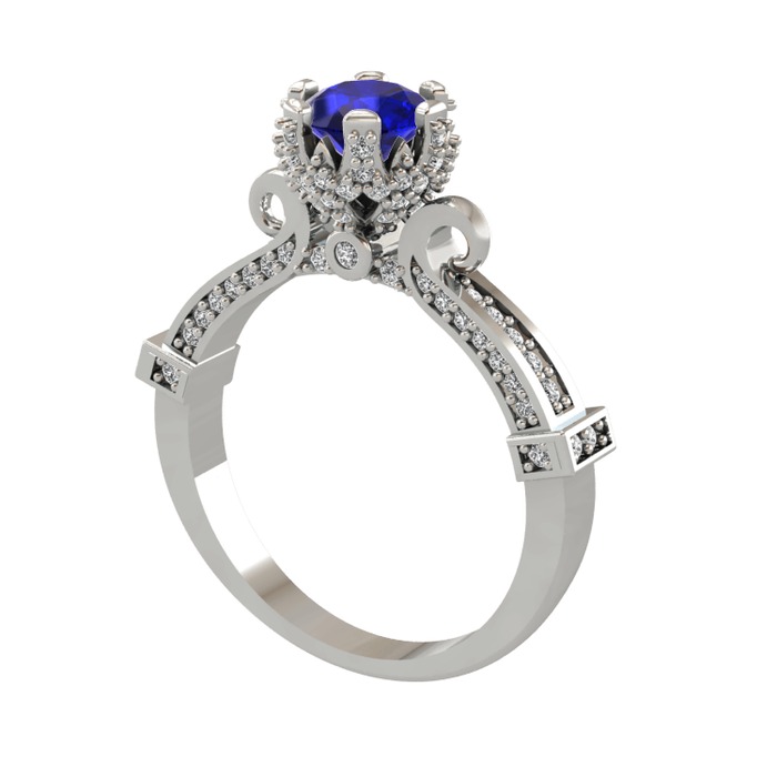 Lab safir ve swarovski 18 ayar beyaz altın yüzük