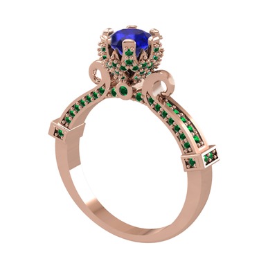 Lab safir ve yeşil kuvars 18 ayar rose altın yüzük