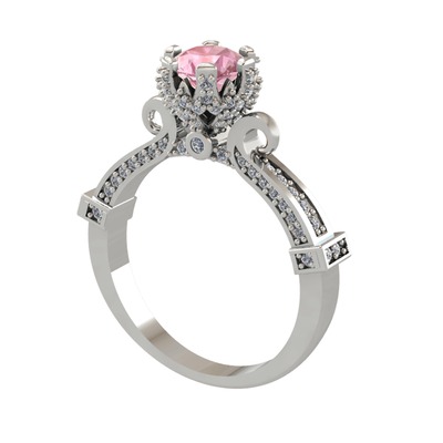 Pembe kuvars ve pırlanta 8 ayar beyaz altın yüzük (1.034 karat)