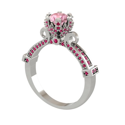 Pembe kuvars ve rodolit garnet 8 ayar beyaz altın yüzük