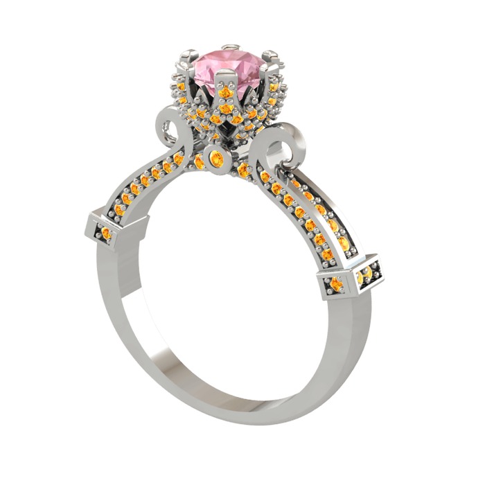 Pembe kuvars ve sitrin 14 ayar beyaz altın yüzük