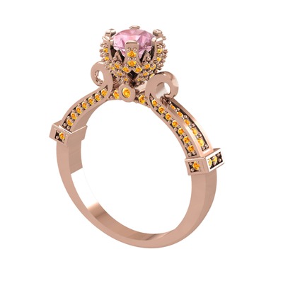 Pembe kuvars ve sitrin 18 ayar rose altın yüzük