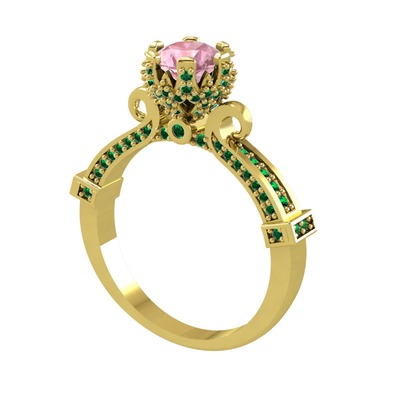 Pembe kuvars ve yeşil kuvars 8 ayar altın yüzük