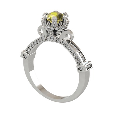 Peridot ve beyaz zirkon 14 ayar beyaz altın yüzük