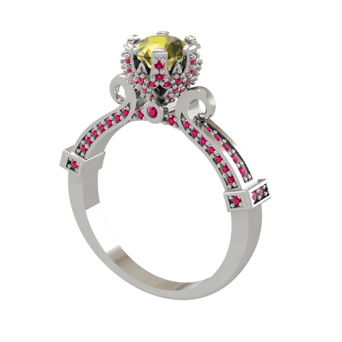 Peridot ve rodolit garnet 14 ayar beyaz altın yüzük